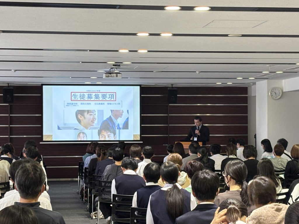 当日は、教頭・教務主任・募集対策部より、それぞれの立場から学校の特色や入試に関する説明を行いました。参加者の皆さまの真剣なまなざしに、説明する教職員の話にも自然と熱が入り、終了後も多くの質問やご相談をいただくなど、充実した説明会となりました。