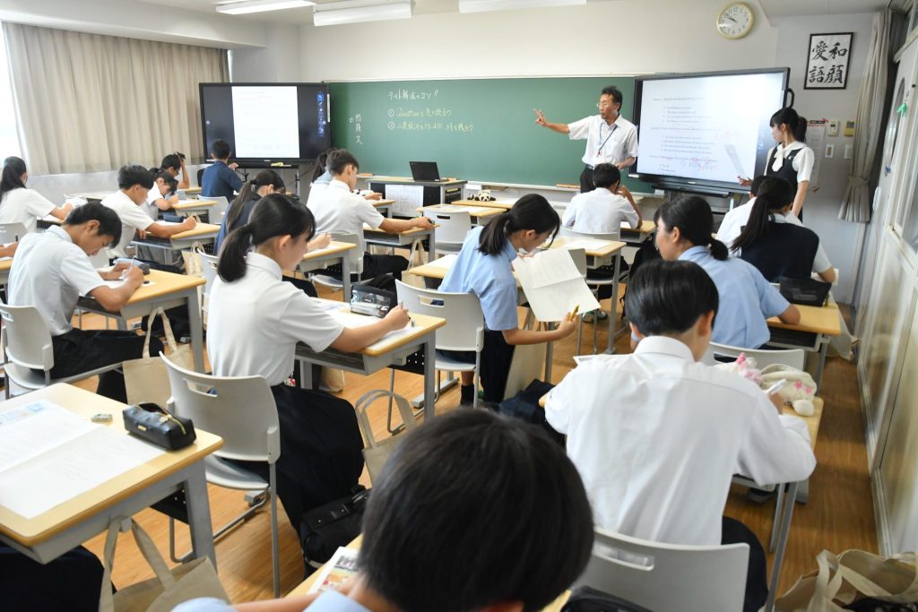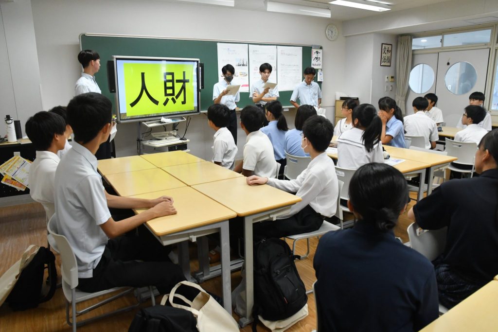 《特別進学科》の入試解説は先生方が主導して行いましたが、英語の入試解説では高校生も先生と掛け合いながら挑戦し、アンケート結果から高評価を受けていました。そのほか理科の実験や教科の垣根を超えた高校生が作ったカルタで学びを深めていました。