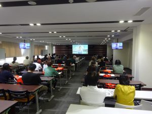 その間、保護者の皆様には、学校説明と入学試験要項について説明をしました。本校の教育環境や生徒の様子について紹介し、入学試験要項と、出願について説明しました。