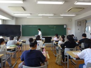 最初に、参加したお子さん方に入試体験テストを実施しました。入学試験の雰囲気を体験してもらい、本番の時、緊張せずに自分の力を発揮してもらいたいと考え、実施しました。