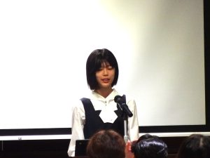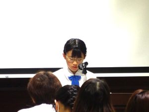 親子がそろったところで、本校の生徒が清和中での学びについて発表を行いました。在校生は、入学してから取り組んでいることやその成長の様子について、卒業生は、中学校時代を振り返って頑張ったことや思い出を話してくれました。